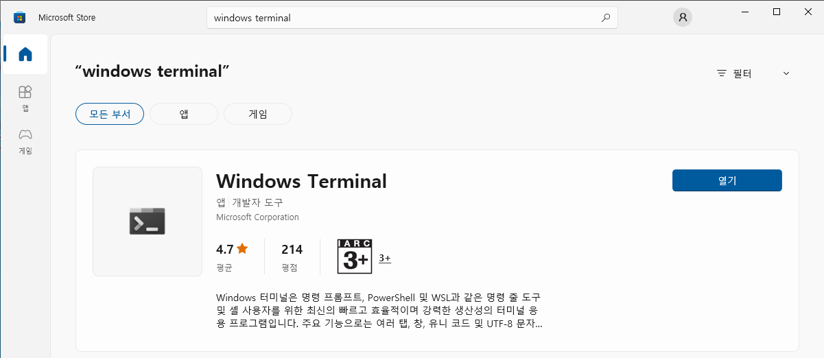 windows terminal로 검색하여 설치가 가능합니다.