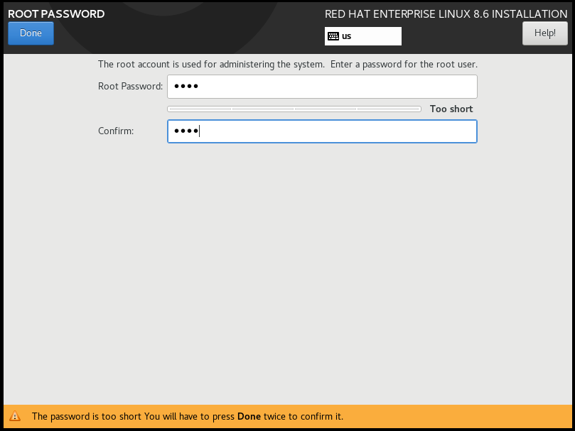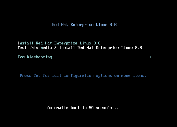 Install Red Hat Enterprise Linux 8.6을 선택하여 엔터를 클릭하세요.