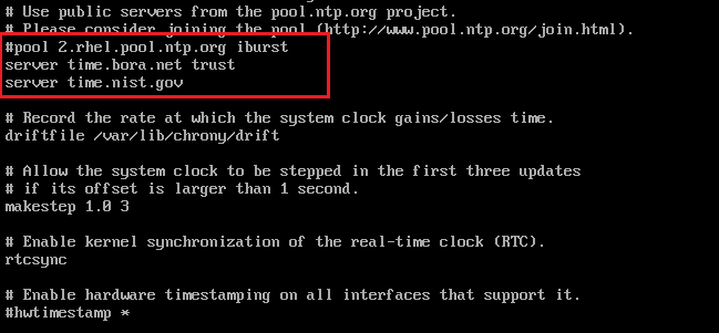 pool 2.rhel.pool.ntp.org iburst 주석처리 또는 삭제