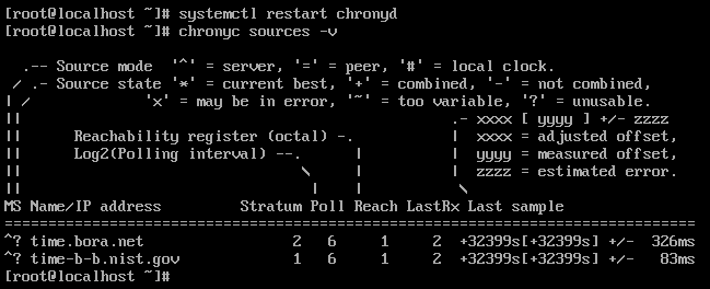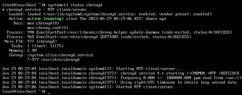 #systemctl status chronyd // 활성화 안되어 있으면 활성화 또는 설치 필요