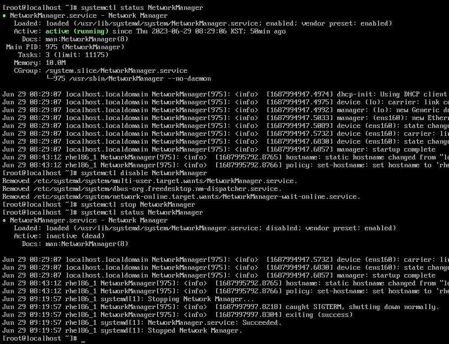 #systemctl stop NetworkManager // NetworkManager 데몬 중지