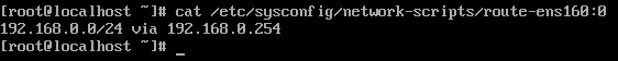 route add -net 192.168.0.0 netmask 255.255.255.0 gw 192.168.0.254 dev ens160:0