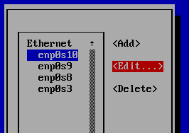 ↑↓커서로 해당 이더넷을 선택한 후 → 커서를 클릭하면 <Add>, <Edit...>, <Delete>를 선택할 수 있습니다.