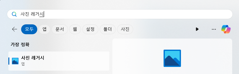 3. 앱 검색에서 "사진 레거시"를 검색하여 실행하세요.