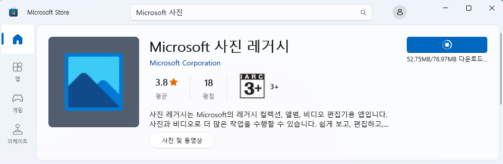 2.Microsoft Store에서 "Microsoft 사진 레거시"를 설치하세요.