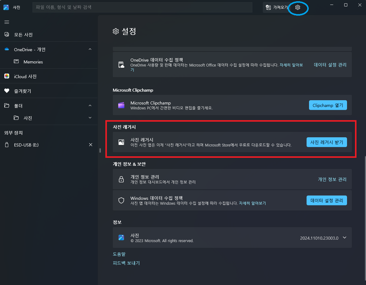 1. 새로운 사진앱 설정에서 "사진 레거시 받기"를 하세요.