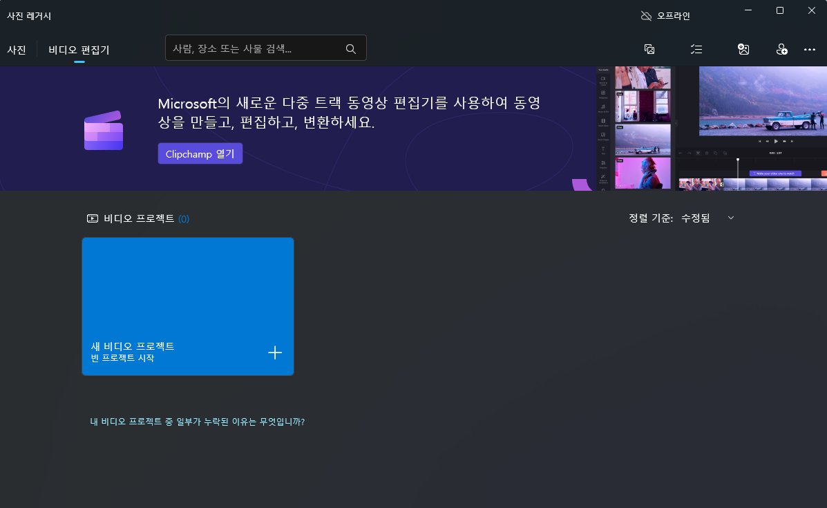 윈도우 11에서 "비디오 편집기"가 안보입니다.