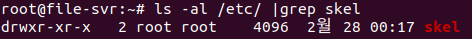 /etc/skel/ 디렉터리는 사용자 생성 시 적용되는 홈 디렉터리 기본 값입니다.