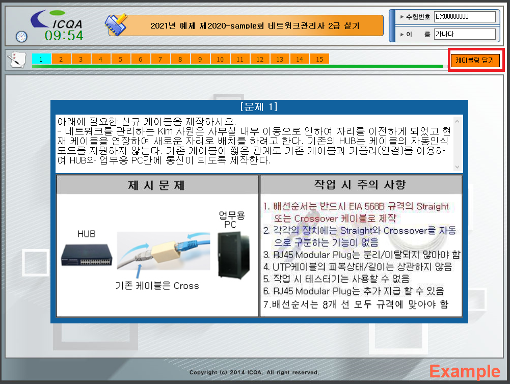 : 실제 시험에서 처음에 UTP 케이블 제작 10분으로 시작이 됩니다.