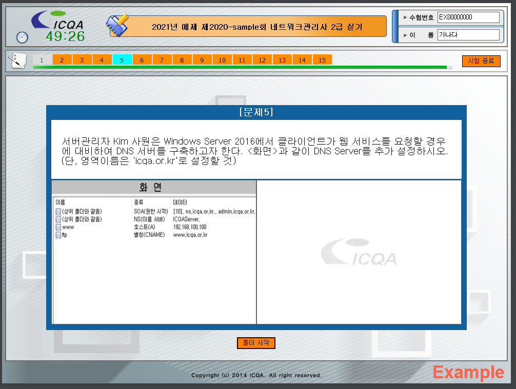 - 시험 예제 선택(시험 예제 선택 후 확인을 클릭하여 진행하시면 됩니다.)