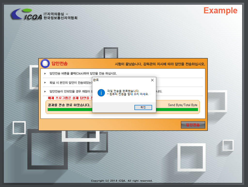 : [답안전송]을 클릭하여 완료하여야 정상적인 종료입니다.