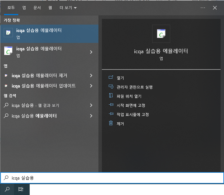 ※ 프로그램 실행 전 [ICQA 실습용 에뮬레이터 업데이트]를 꼭 실행하여 최신내용으로 진행하시기 바랍니다.