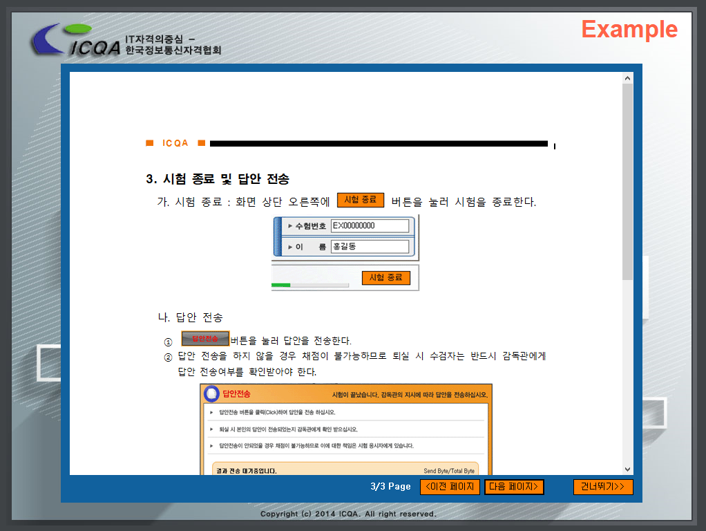 : 시험 시작 전 작성방법에 대한 내용으로 시험 당일에 볼 수 있습니다.