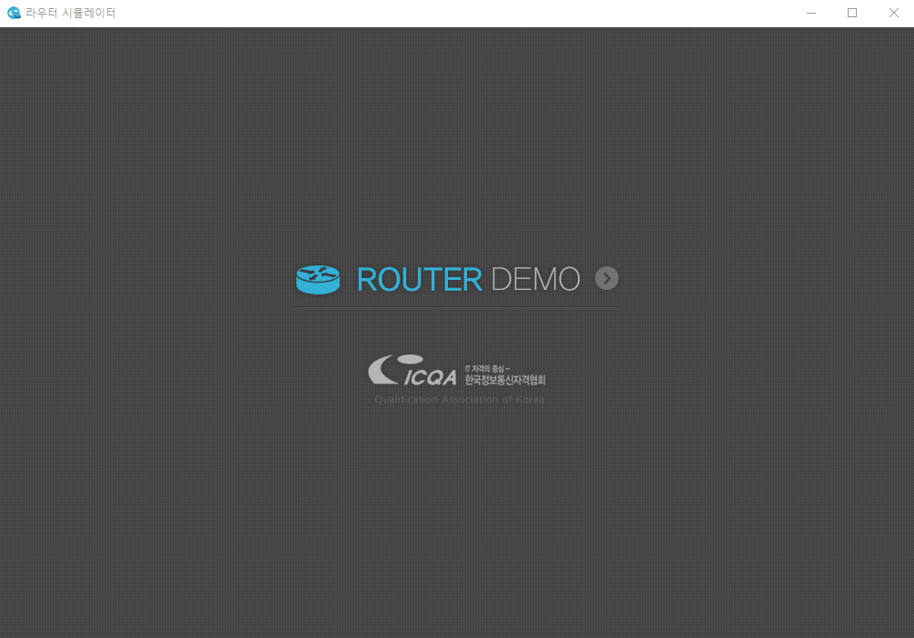 - Router Emulator 실행 후 첫 화면(화면 아무 곳이나 클릭하시면 화면 넘어갑니다.)