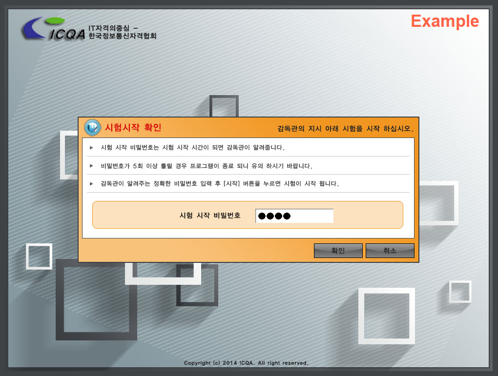 : 실제 시험 시작 전에 [시험 시작 비밀번호] 입력란이 있습니다.