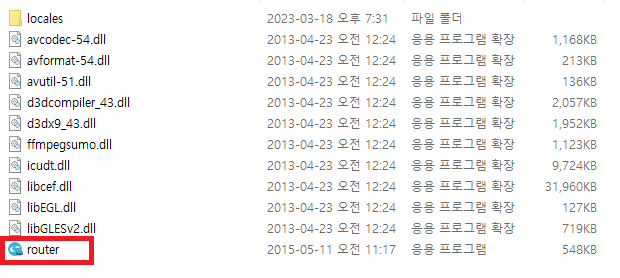 - 압축을 풀게 되면 아래 화면처럼 파일이 보이게 되고 router.exe 파일 더블클릭하시면 바로 실행됩니다.