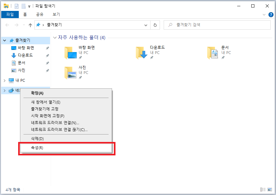 네트워크 환경 설정 옵션 찾는 방법이 여러 가지가 있는데 여기서는 [파일 탐색기]에서 찾아가겠습니다.